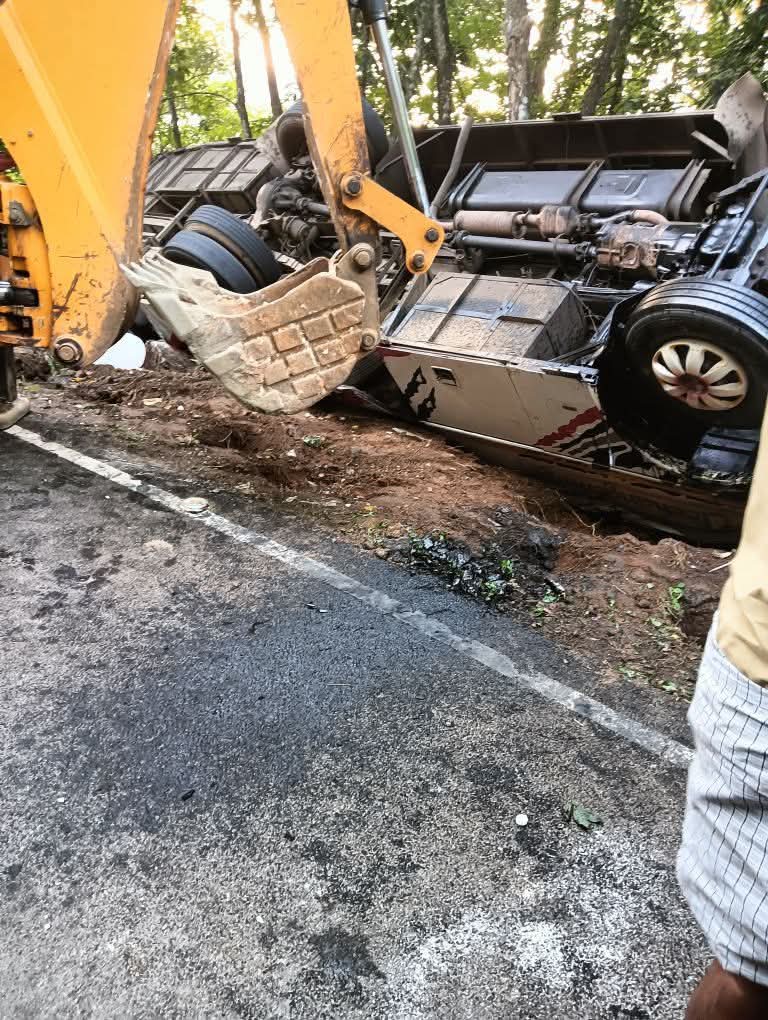 എരുമേലി കണമലയിൽ ശബരിമല തീർഥാടകരുടെ ബസ് മറിഞ്ഞ് അപകടം; ഒരു മരണം, 3 പേരുടെ നില ഗുരുതരം
